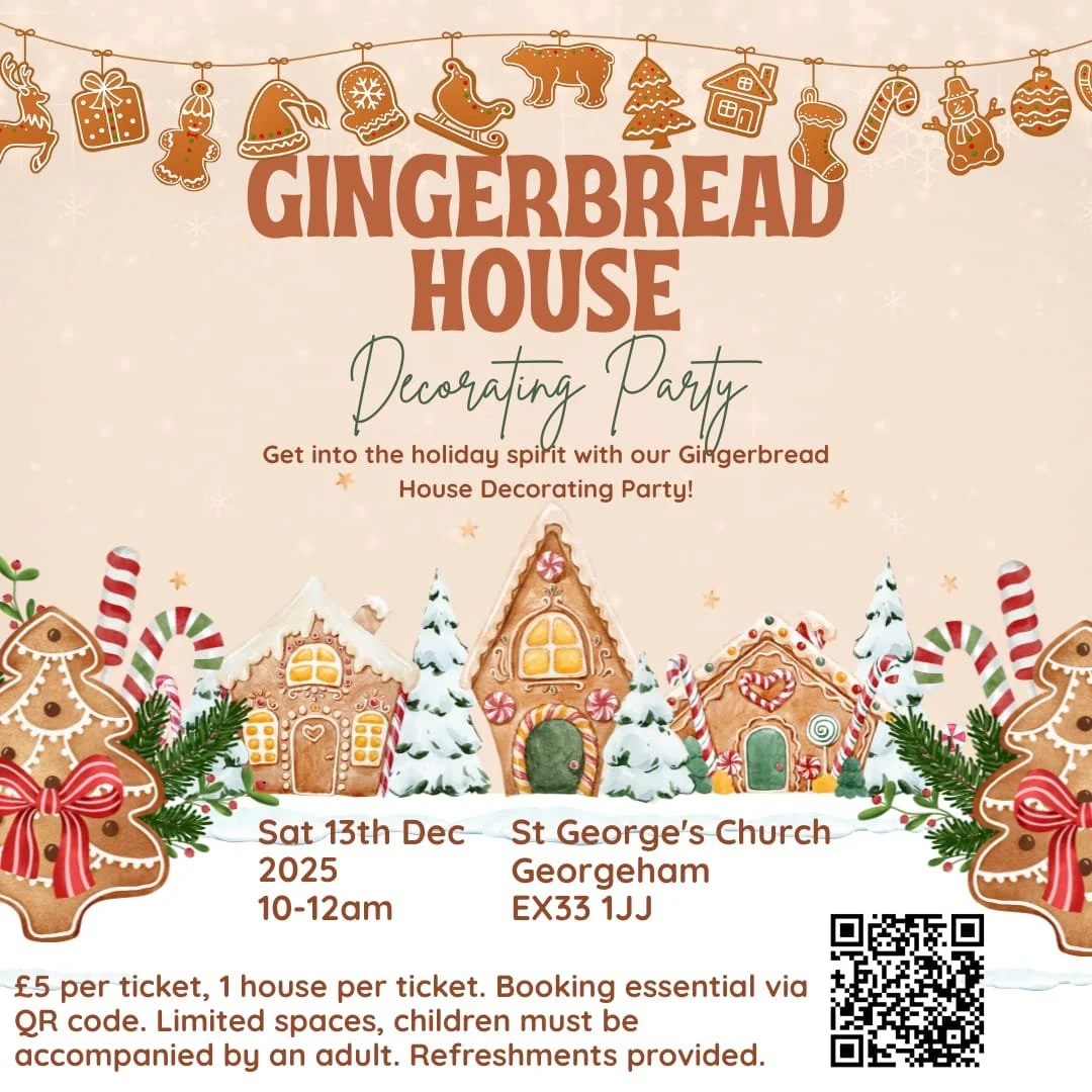 Come and join us and make a GinerBread House. This event is aimed at our young people. You need to reserve the Childs space and an adult must accompany the child.
