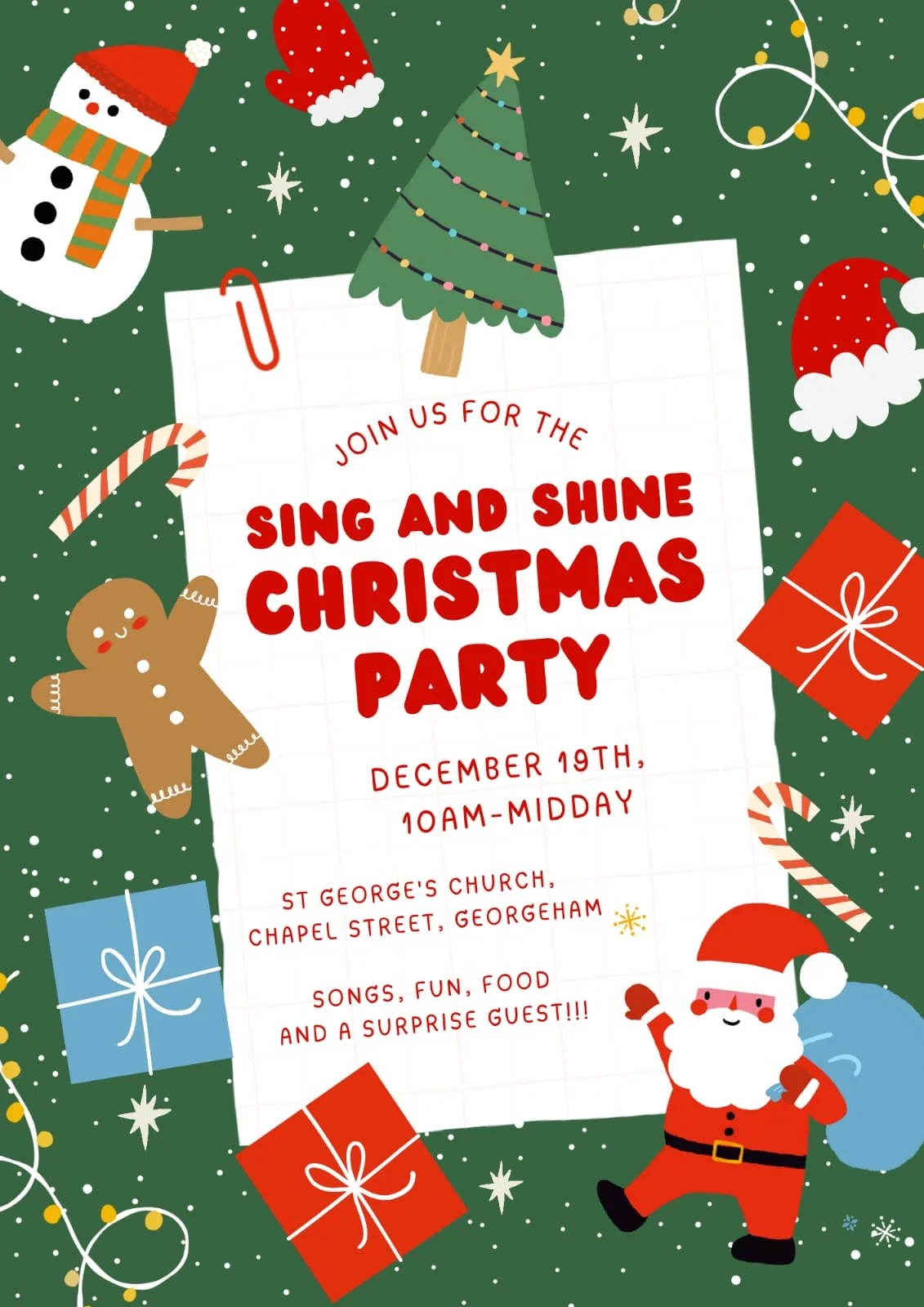 Sing & Shine Christmas Party, Starting at 10am in St George’s Church, party food and a surprise guest!